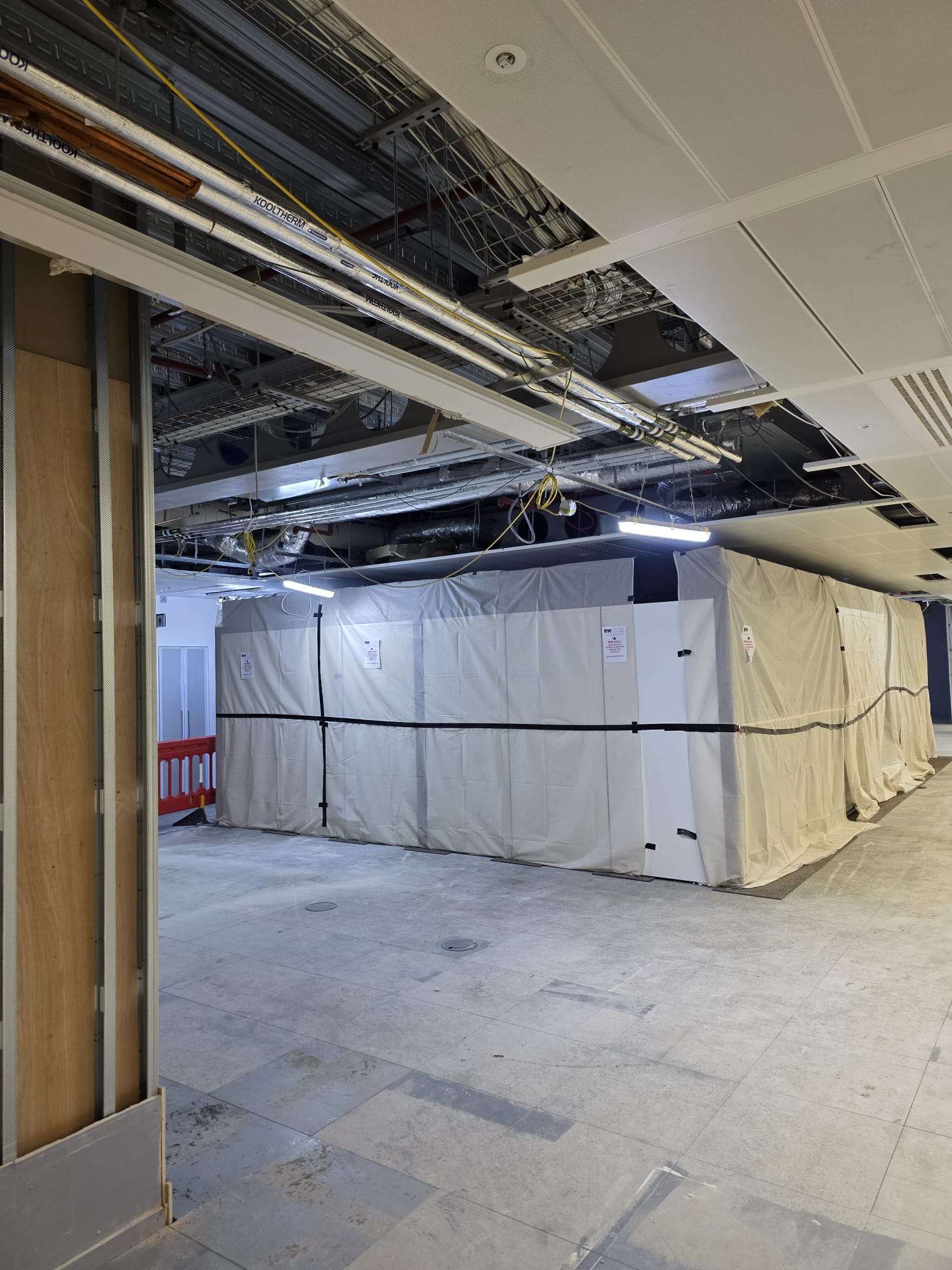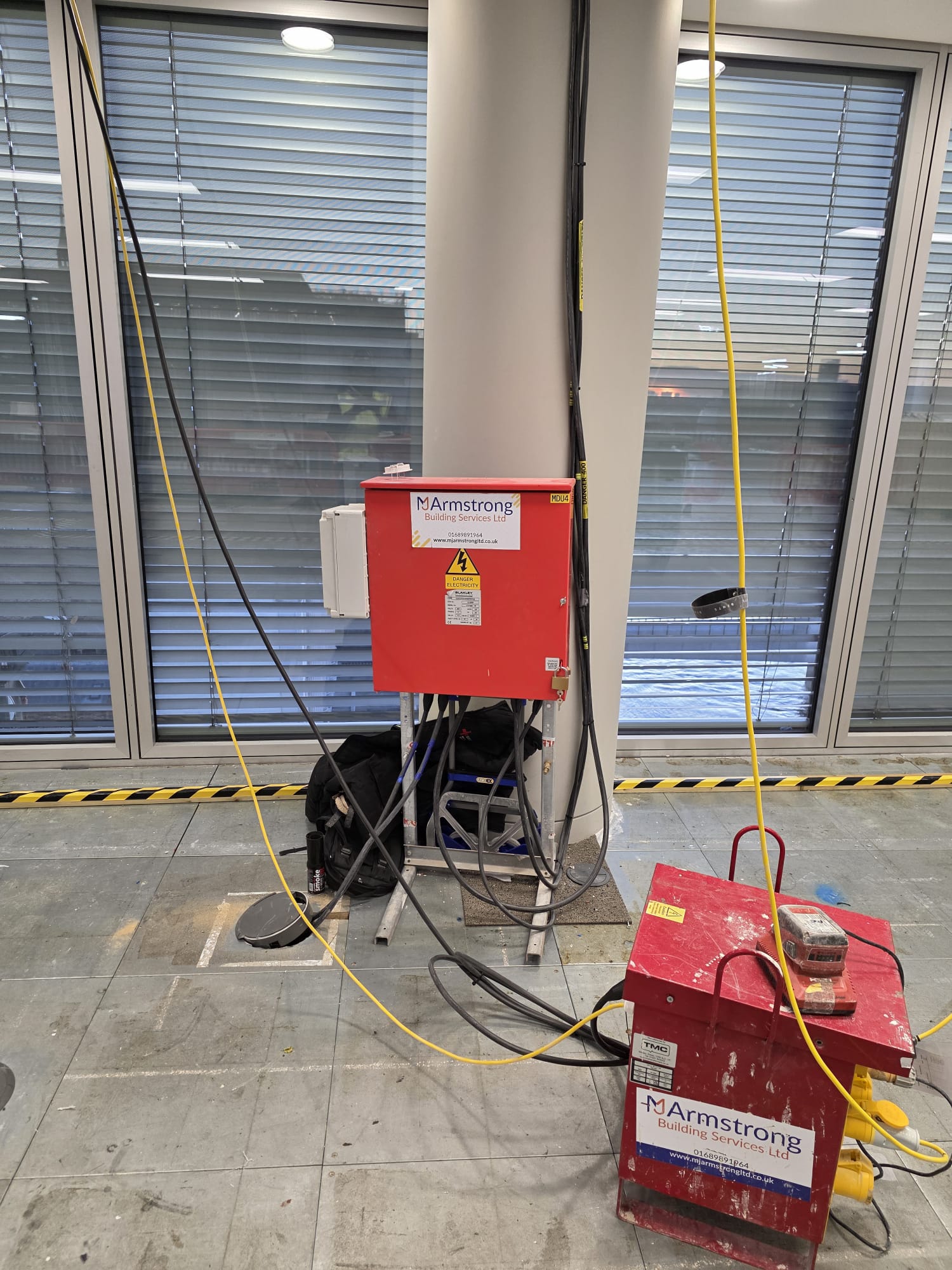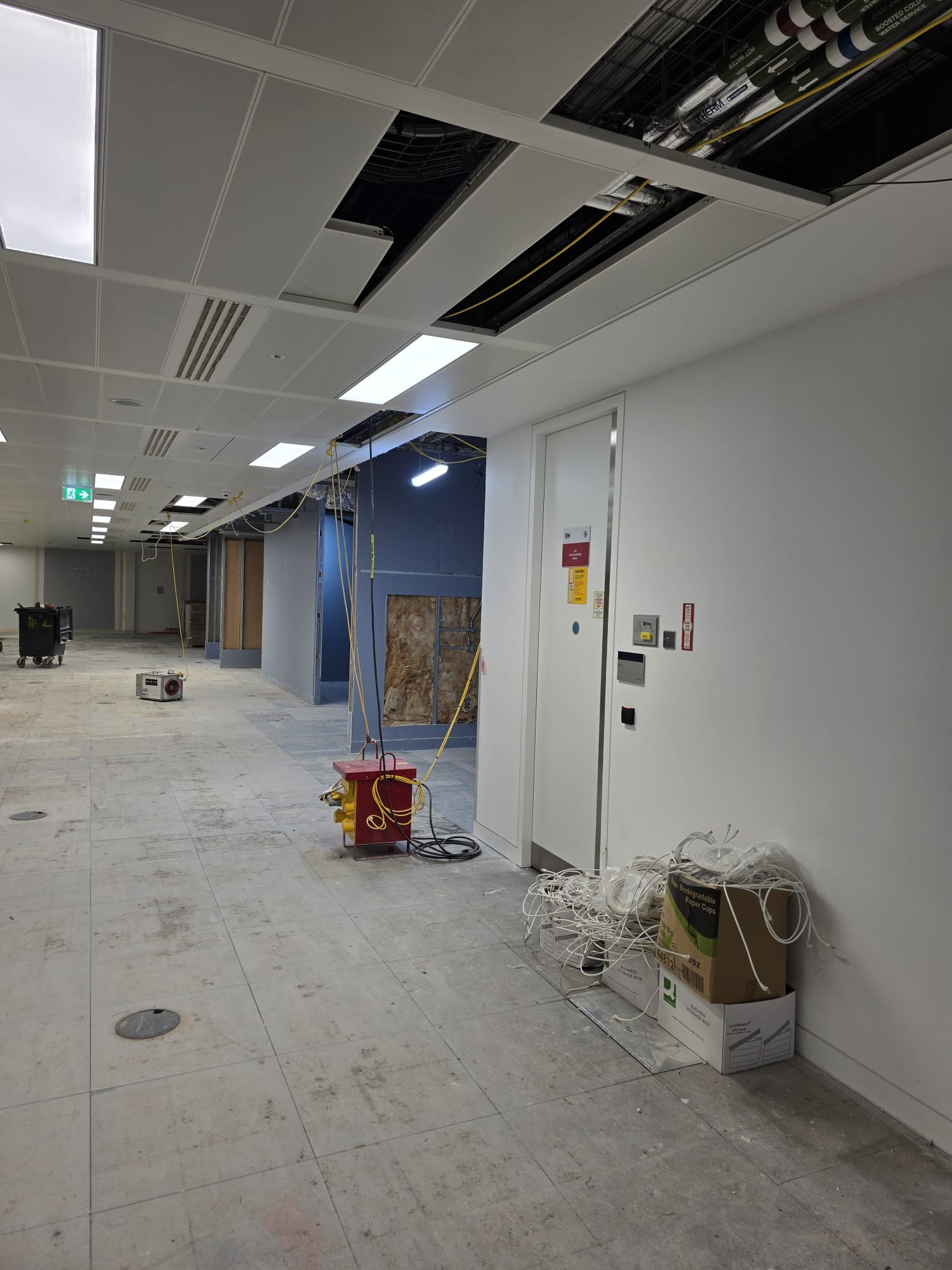 We set up a full temporary electrical system to support the site during ongoing works. This included installing all temporary lighting and emergency lighting to ensure safe visibility throughout the workspace. We also fitted temporary sockets for tools and equipment and installed the MDU and transformer to provide a stable, reliable power supply. Everything was arranged neatly and safely, giving the site team a well-organised temporary setup that met all safety and operational requirements.